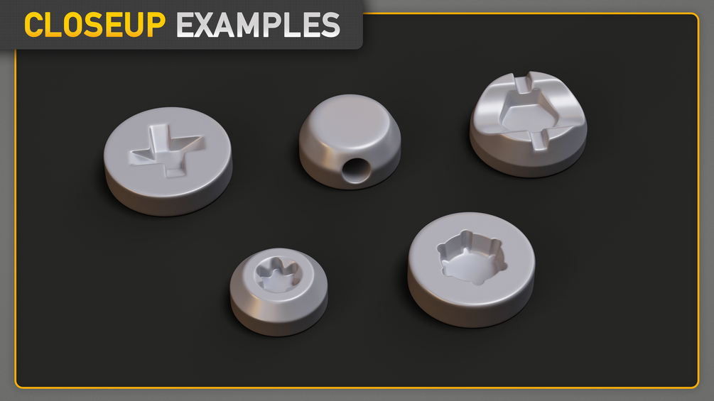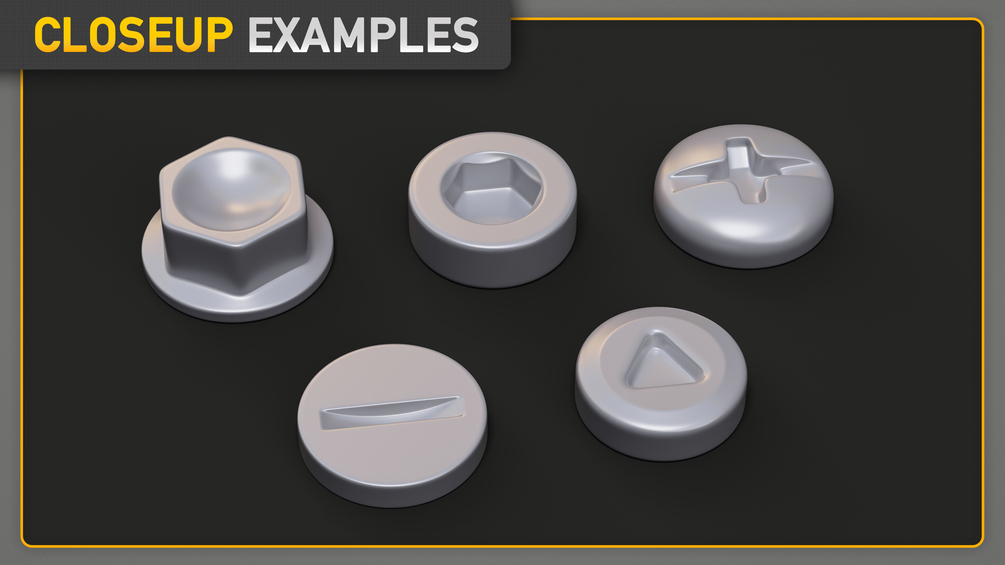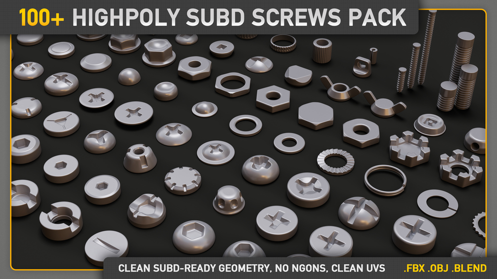 This pack contains over 100 unique high-quality screws and fasteners. Perfect for quickly adding details to your models and scenes.